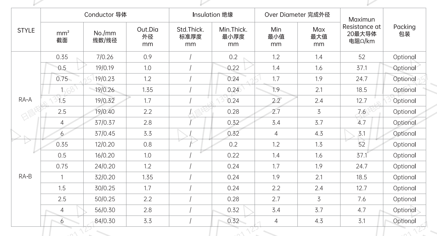 絕 緣:聚氯乙烯